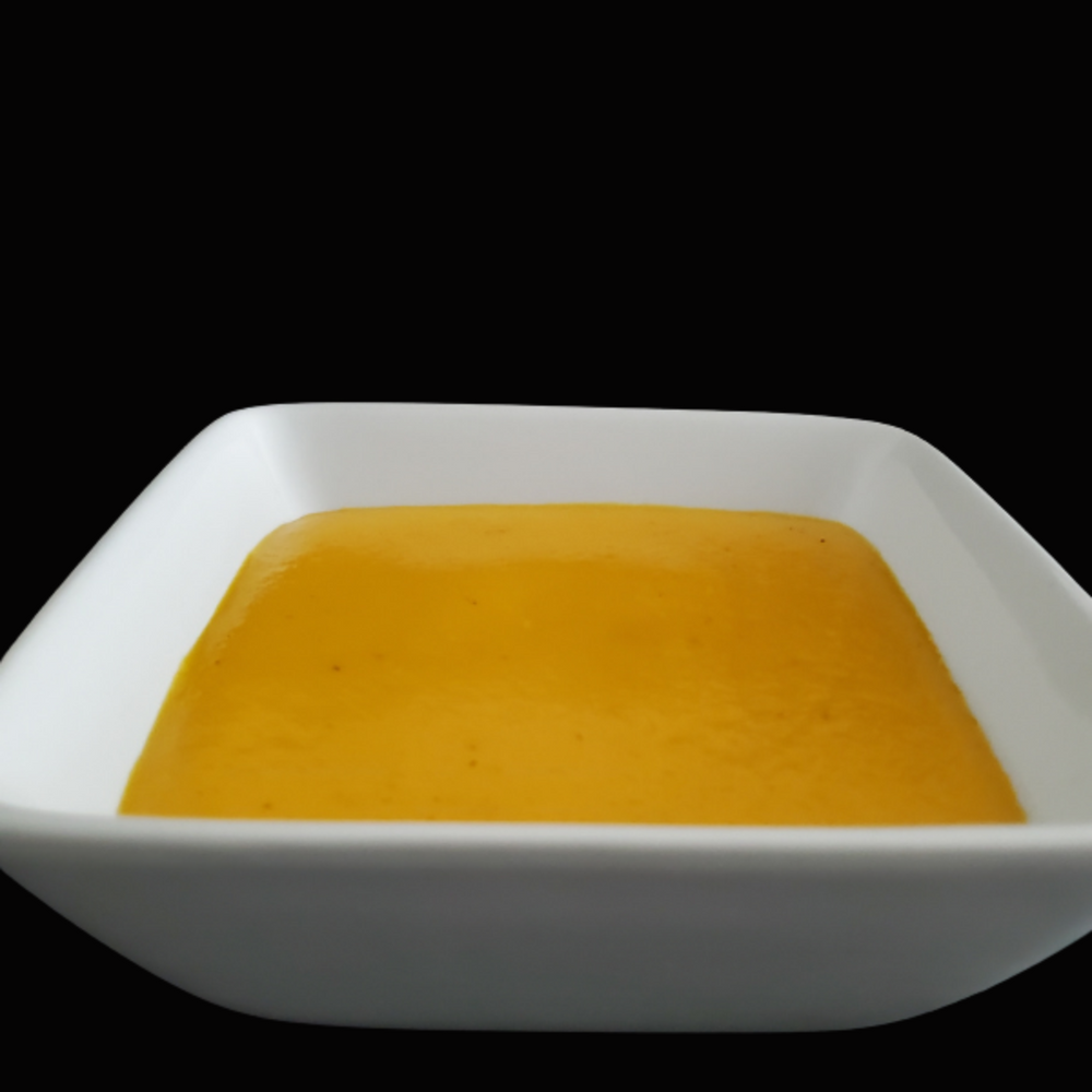 Velouté de poivrons rouges, pommes et cari